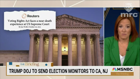 During her Friday night opening monologue on The Briefing, MSNBC’s Jen Psaki theorized that President Trump was conspiring to “suppress the vote any way that he can.” She cited various loosely-related administration efforts and jumbled them together as proof of Trump attempting to wrongfully sway midterm results.